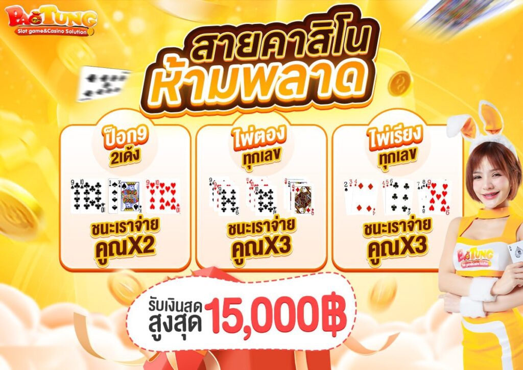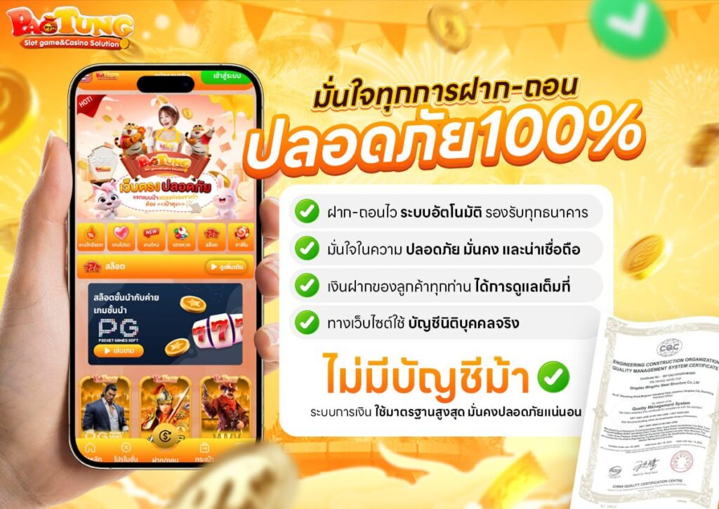 PAOTUNGสล็อต เว็บตรง ไม่ผ่านเอเย่นต์ มาตรฐาน สากล การันตีเลยว่าจะได้เล่นเกมส์สล็อต เว็บแท้ ปลอดภัยแน่นอน 100% เพียงคลิกที่ปุ่มสมัครสมาชิกบนหน้าเว็บไซต์สเป๋าตุง สล็อต เว็บตรง กรอกข้อมูลให้ครบถ้วน ก็จะได้รับความบันเทิง สนุกสนานในเว็บสล็อต ไม่ว่าจะเลือกเล่นเกมส์ไหนก็แตกหนักทุกเกมส์ เป๋าตุง สล็อต vip ถอนเงินได้จริง ไม่มีขั้นต่ำในการฝากถอน และยังรอบรับ สล็อต ture wallet หรือจะบัญชีธนาคารทุกค่ายชั้นนำ สะดวก รวดเร็ว ด้วยระบบ สล็อตออโต้ ใช้งานง่าย เสร็จภายใน 1 นาที มาพร้อมกับโปรโมชั่นมากมายให้นักพนันทุกคนได้เลือกรับ เป๋าตุง สล็อต 999 ของเราไม่มีการเอาเปรียบผู้เล่นแน่นอน